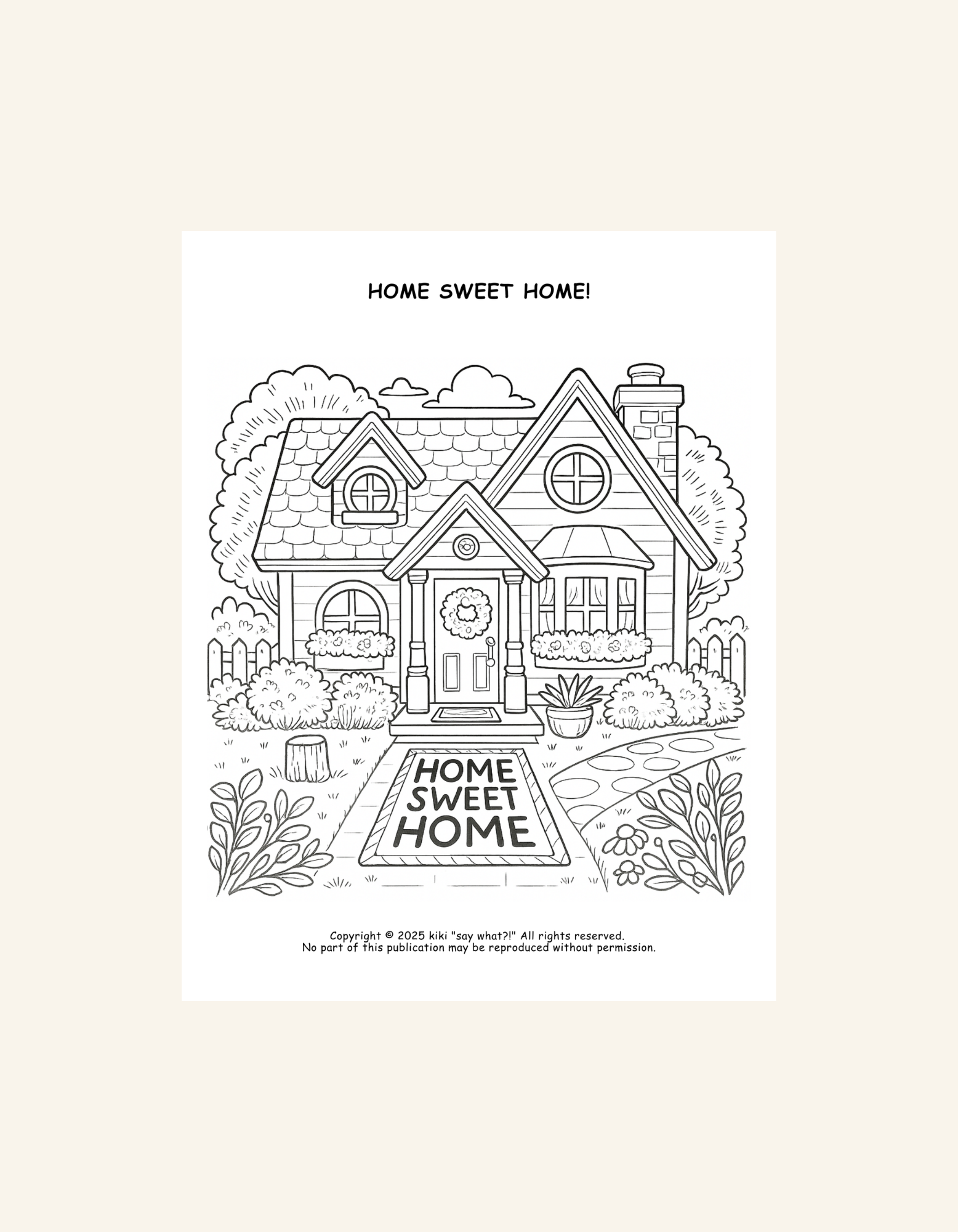 Digital Copy of Home Sweet Home Coloring Page